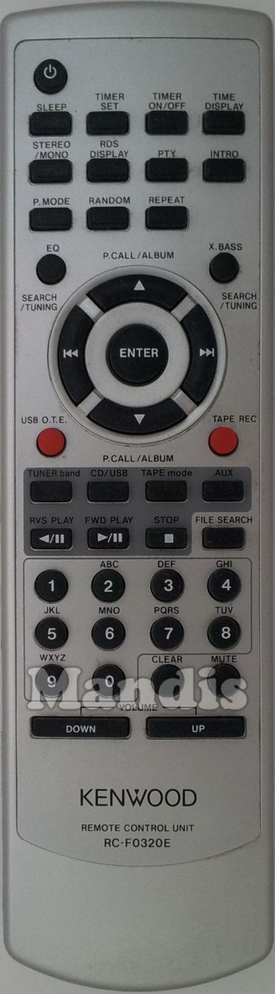 Comando à distância original RC-F 0320 E (A70-1727-08) que serve para sistema hi-fi da marca Kenwood. Trata-se de um modelo original de comando à distância.