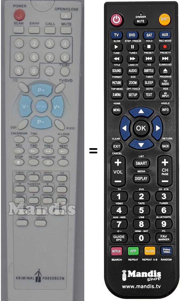 Comando à distância que substitui o original DTA 2196 em todas as suas funções.