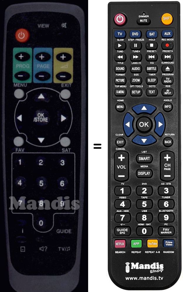 Comando à distância que substitui o original em todas as suas funções.