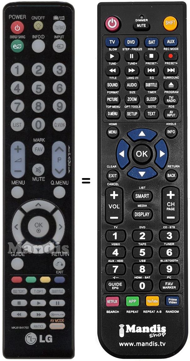 Comando à distância que substitui o original MKJ61841702 em todas as suas funções.