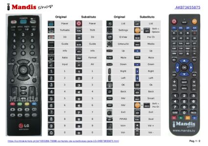Comando à distância que substitui o original LG (AKB73655875) em todas as suas funções.