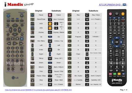 Um documento está incluso para ajudá-lo a usar o novo controle remoto facilmente, mostrando a correspondência dos botões.