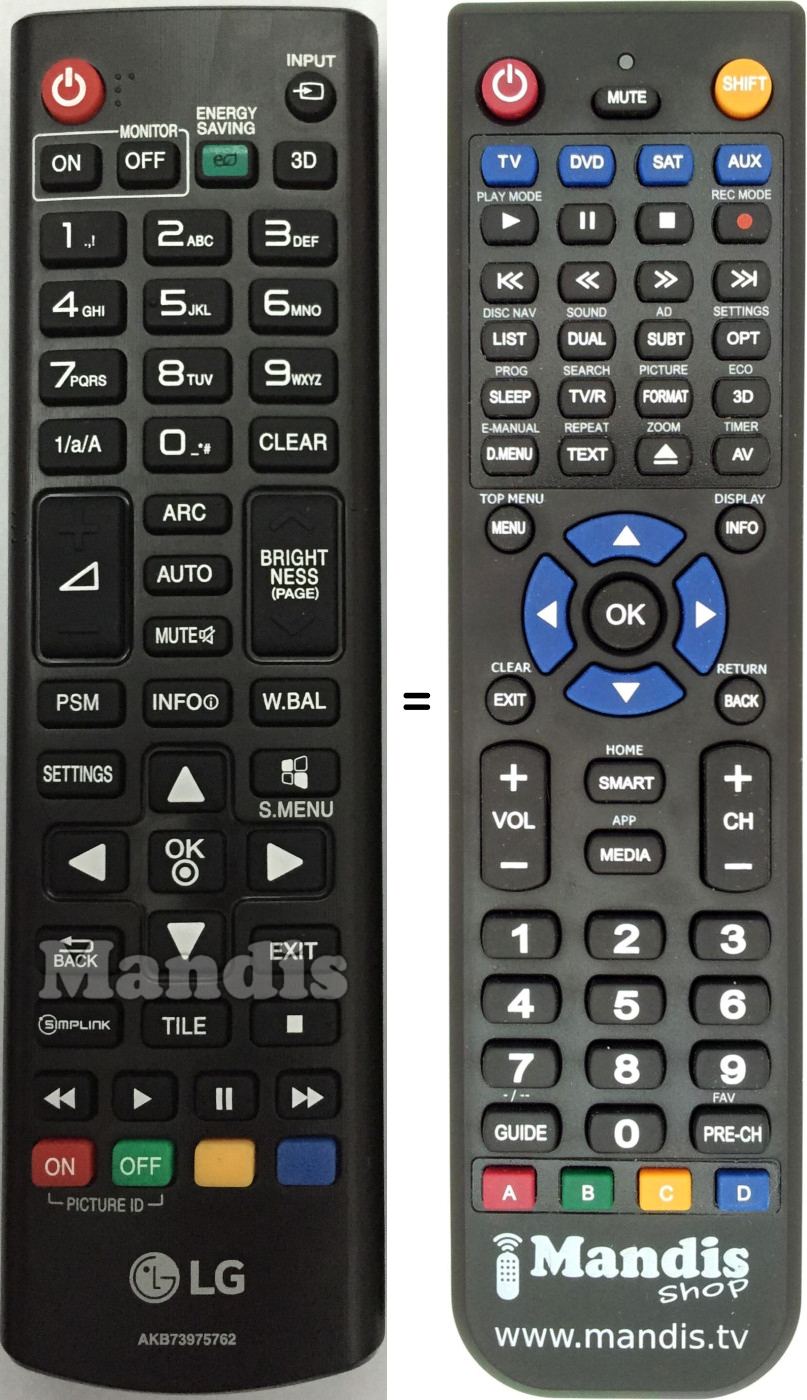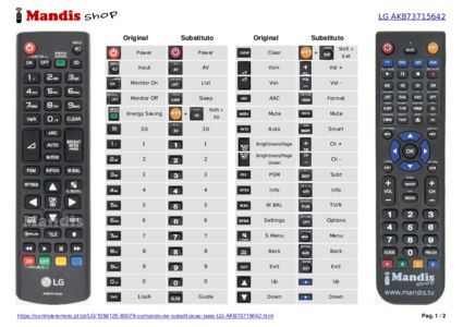 Comando à distância que substitui o original AKB73975762 em todas as suas funções. Não se trata de um comando universal, mas sim de um comando que substitui o original. Receberá um comando completamente pronto. Para fazê-lo funcionar, basta colocar as pilhas. Não é necessário programá-lo. Damos-lhe total garantia de que o comando cumprirá com as mesmas funções do comando original.