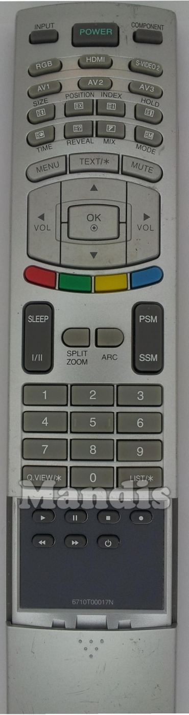 Comando à distância original 6710T00017N que serve para televisores da marca LG. Trata-se de um modelo original de comando à distância.