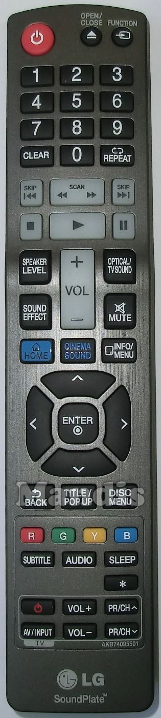 Comando à distância original AKB74095501 que serve para home cinema da marca LG. Trata-se de um modelo original de comando à distância.