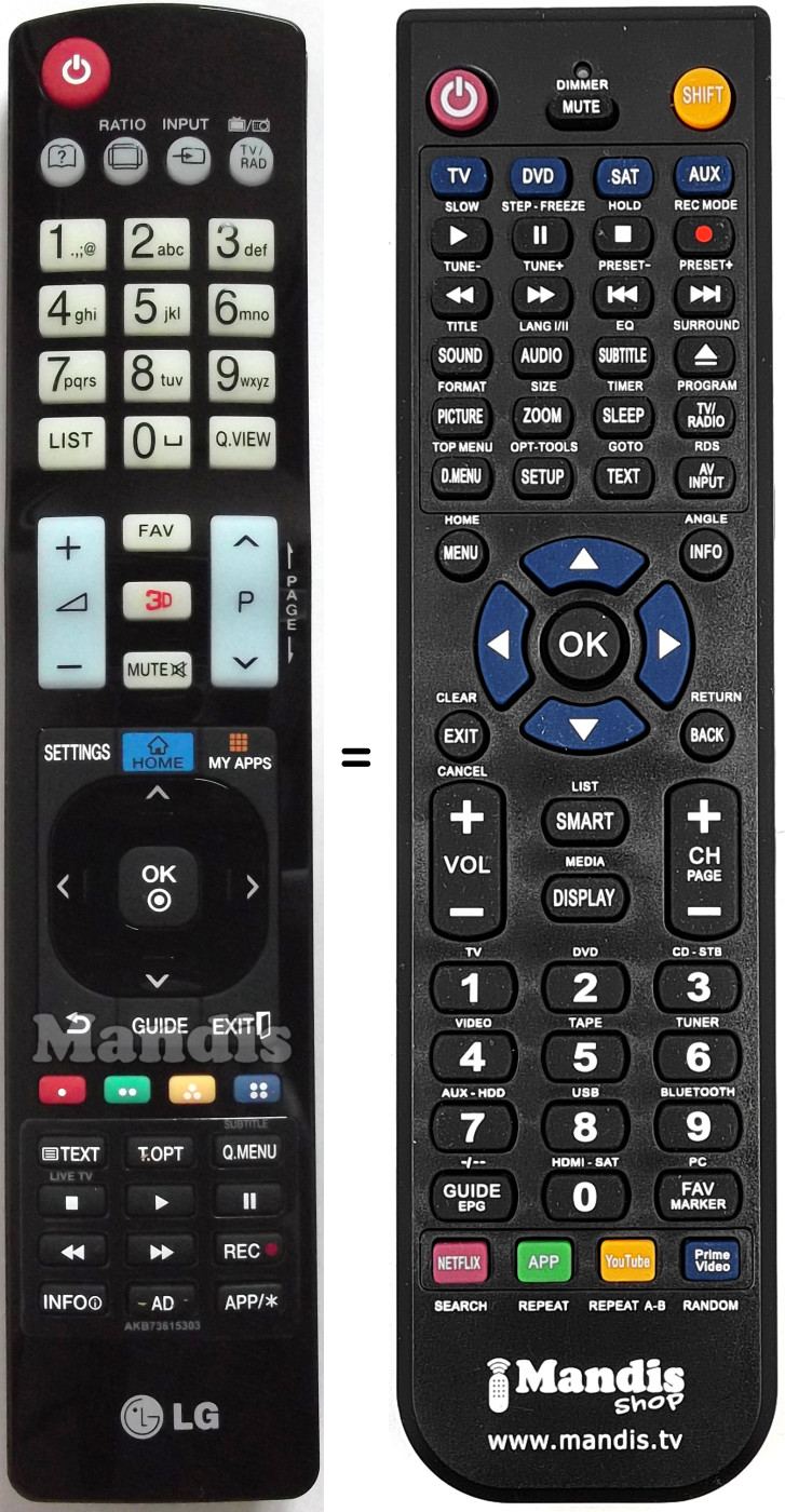 Comando à distância que substitui o original em todas as suas funções.