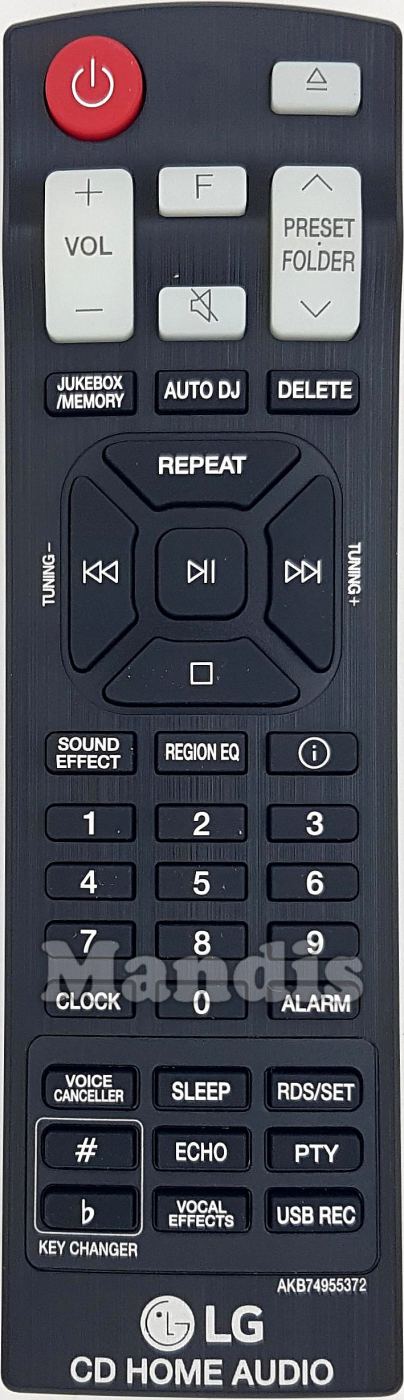 Comando à distância original AKB74955372 que serve para sistema hi-fi da marca LG. Trata-se de um modelo original de comando à distância.