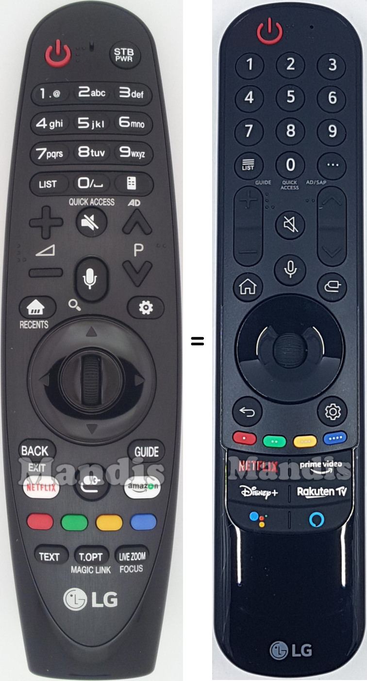 Comandos equivalente que substituem em todas as suas funções o comando LG MR21GA (AKB76039701):