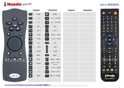 Abaixo, mostraremos a correspondência entre cada botão no controle remoto original e o botão que executa a mesma função no controle remoto de substituição. Em alguns casos, pode ser necessário pressionar a tecla SHIFT antes de pressionar outro botão para realizar determinadas ações. Essas funções adicionais geralmente não são amplamente utilizadas e são incluídas para facilitar o entendimento do controle remoto de substituição, ou porque o controle remoto original tem mais botões do que seu equivalente.