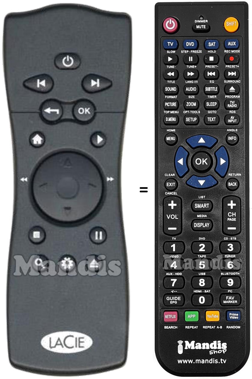 Abaixo, mostraremos a correspondência entre cada botão no controle remoto original e o botão que executa a mesma função no controle remoto de substituição. Em alguns casos, pode ser necessário pressionar a tecla SHIFT antes de pressionar outro botão para realizar determinadas ações. Essas funções adicionais geralmente não são amplamente utilizadas e são incluídas para facilitar o entendimento do controle remoto de substituição, ou porque o controle remoto original tem mais botões do que seu equivalente.
