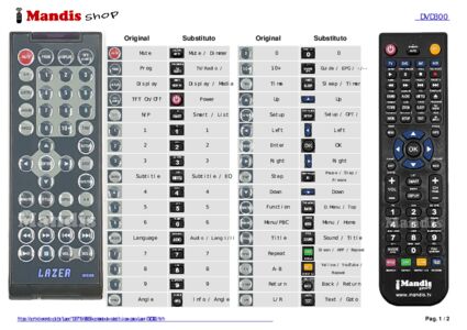 Abaixo, mostraremos a correspondência entre cada botão no controle remoto original e o botão que executa a mesma função no controle remoto de substituição. Em alguns casos, pode ser necessário pressionar a tecla SHIFT antes de pressionar outro botão para realizar determinadas ações. Essas funções adicionais geralmente não são amplamente utilizadas e são incluídas para facilitar o entendimento do controle remoto de substituição, ou porque o controle remoto original tem mais botões do que seu equivalente.