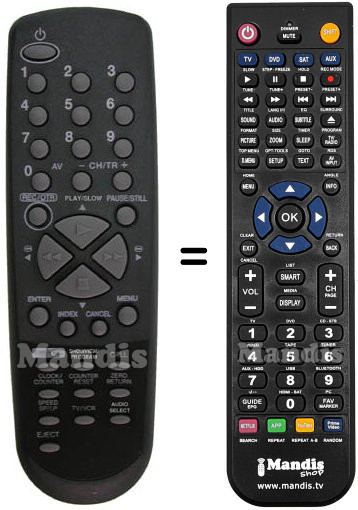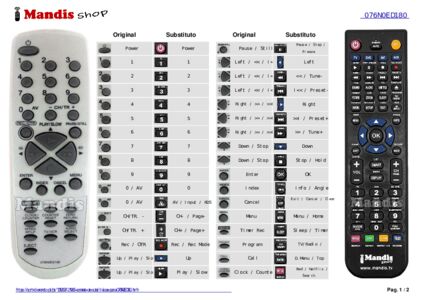 Abaixo, mostraremos a correspondência entre cada botão no controle remoto original e o botão que executa a mesma função no controle remoto de substituição. Em alguns casos, pode ser necessário pressionar a tecla SHIFT antes de pressionar outro botão para realizar determinadas ações. Essas funções adicionais geralmente não são amplamente utilizadas e são incluídas para facilitar o entendimento do controle remoto de substituição, ou porque o controle remoto original tem mais botões do que seu equivalente.