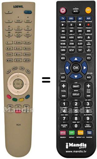 Abaixo, mostraremos a correspondência entre cada botão no controle remoto original e o botão que executa a mesma função no controle remoto de substituição. Em alguns casos, pode ser necessário pressionar a tecla SHIFT antes de pressionar outro botão para realizar determinadas ações. Essas funções adicionais geralmente não são amplamente utilizadas e são incluídas para facilitar o entendimento do controle remoto de substituição, ou porque o controle remoto original tem mais botões do que seu equivalente.