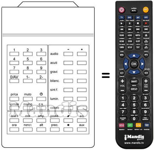 Comando à distância que substitui o original em todas as suas funções.