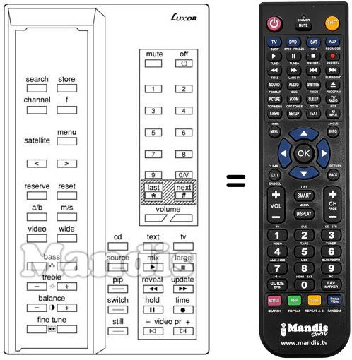 Comando à distância que substitui o original em todas as suas funções.