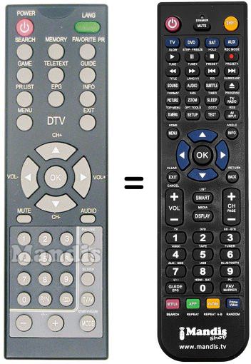 Comando à distância que substitui o original REMCON640 em todas as suas funções.
