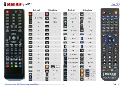 Início > Marcas > Comandos à Distância MAJESTIC > Controle remoto para MAJESTIC SAL003