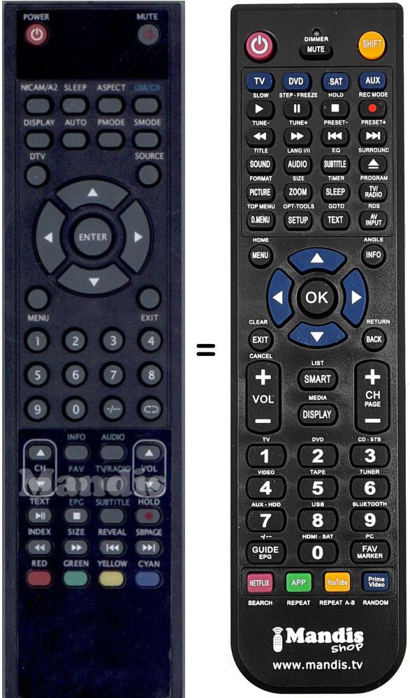 Comando à distância que substitui o original TVH-1950 em todas as suas funções.