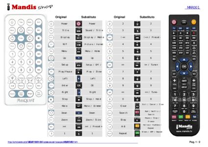 Abaixo, mostraremos a correspondência entre cada botão no controle remoto original e o botão que executa a mesma função no controle remoto de substituição. Em alguns casos, pode ser necessário pressionar a tecla SHIFT antes de pressionar outro botão para realizar determinadas ações. Essas funções adicionais geralmente não são amplamente utilizadas e são incluídas para facilitar o entendimento do controle remoto de substituição, ou porque o controle remoto original tem mais botões do que seu equivalente.