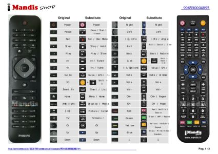Um documento está incluso para ajudá-lo a usar o novo controle remoto facilmente, mostrando a correspondência dos botões.