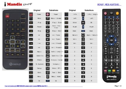 Abaixo, mostraremos a correspondência entre cada botão no controle remoto original e o botão que executa a mesma função no controle remoto de substituição. Em alguns casos, pode ser necessário pressionar a tecla SHIFT antes de pressionar outro botão para realizar determinadas ações. Essas funções adicionais geralmente não são amplamente utilizadas e são incluídas para facilitar o entendimento do controle remoto de substituição, ou porque o controle remoto original tem mais botões do que seu equivalente.