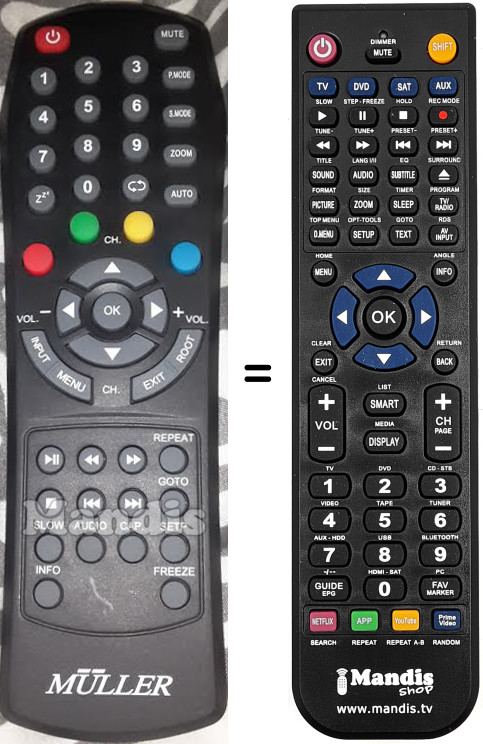 Comando à distância que substitui o original em todas as suas funções.