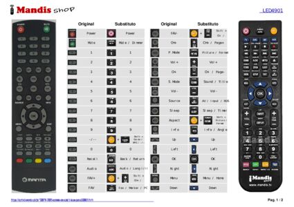 Um documento está incluso para ajudá-lo a usar o novo controle remoto facilmente, mostrando a correspondência dos botões.