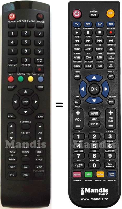 Abaixo, mostraremos a correspondência entre cada botão no controle remoto original e o botão que executa a mesma função no controle remoto de substituição. Em alguns casos, pode ser necessário pressionar a tecla SHIFT antes de pressionar outro botão para realizar determinadas ações. Essas funções adicionais geralmente não são amplamente utilizadas e são incluídas para facilitar o entendimento do controle remoto de substituição, ou porque o controle remoto original tem mais botões do que seu equivalente.