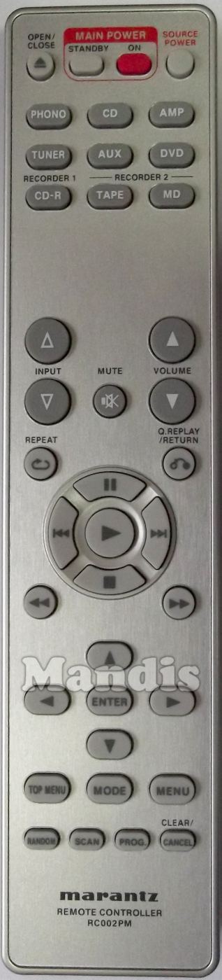 Comando à distância original RC002PM (00MZK26CW0010) da marca Marantz. Trata-se de um modelo original de comando à distância.