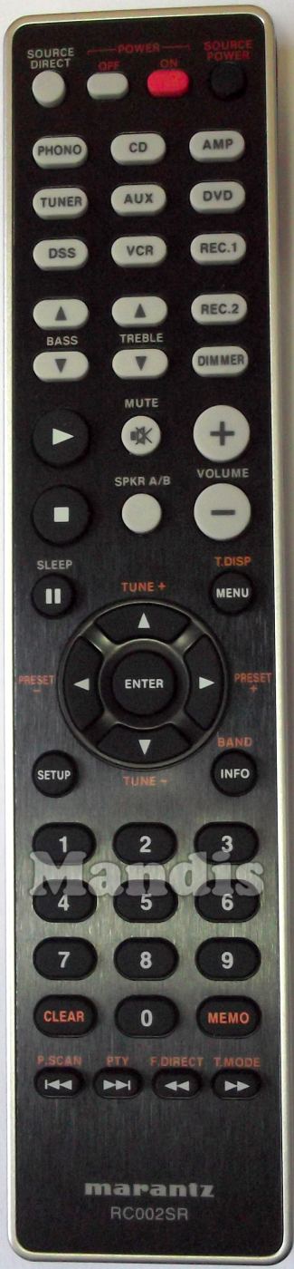 Comando à distância original RC002SR (307010031009M) que serve para av receiver da marca Marantz. Trata-se de um modelo original de comando à distância.
