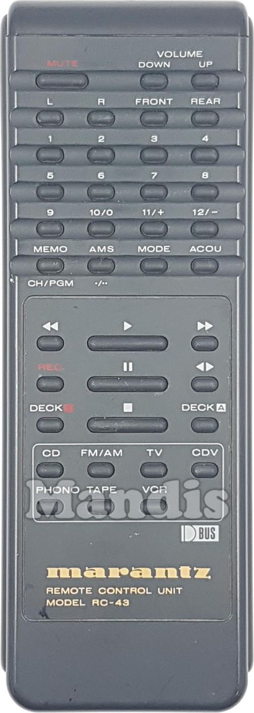 Comando à distância original RC-43 (482221830467) da marca Marantz. Trata-se de um modelo original de comando à distância.