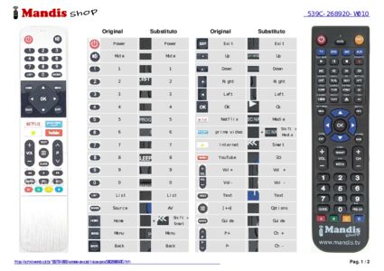 Este controle remoto executa todas as funções do controle remoto original: Power, Mute, 1, 2, 3, 4, 5, 6, 7, 8, 9, 0, List, Source, Home, Menu, Back, Exit, Up, Down, Left, Right, Ok, Netflix, Prime Video, Internet, Youtube, Text, [++], Guide, Vol+, Vol-, P+, P-, <</Reveal, Play/Index, >>Hold, Subtitle, Pause, AD, R, G, Y, B