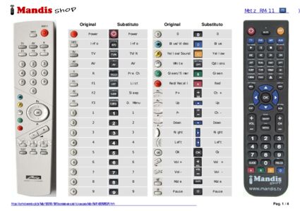 Este controle remoto executa todas as funções do controle remoto original: Power, Info, TV, AV, R, F1, F2, F3, 1, 2, 3, 4, 5, 6, 7, 8, 9, 0, Blue, Yellow, White, Green, Red, Up / P+, Down / P-, Right, Left, OK, Vol+, Vol-, Mute, Pause, Exit, Text, EPG, Menu
