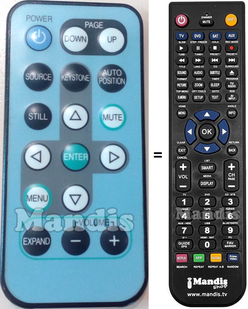 Um documento está incluso para ajudá-lo a usar o novo controle remoto facilmente, mostrando a correspondência dos botões.