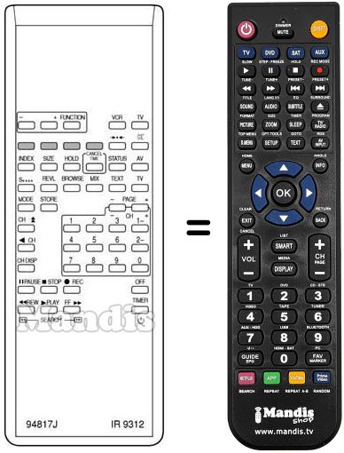 Comando à distância que substitui o original em todas as suas funções.