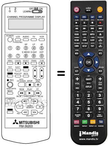 Comando à distância que substitui o original em todas as suas funções.