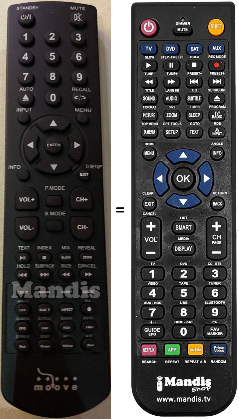 Comando à distância que substitui o original em todas as suas funções.