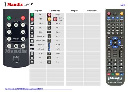 Abaixo, mostraremos a correspondência entre cada botão no controle remoto original e o botão que executa a mesma função no controle remoto de substituição. Em alguns casos, pode ser necessário pressionar a tecla SHIFT antes de pressionar outro botão para realizar determinadas ações. Essas funções adicionais geralmente não são amplamente utilizadas e são incluídas para facilitar o entendimento do controle remoto de substituição, ou porque o controle remoto original tem mais botões do que seu equivalente.