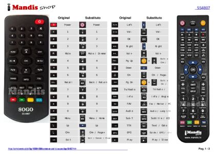 Abaixo, mostraremos a correspondência entre cada botão no controle remoto original e o botão que executa a mesma função no controle remoto de substituição. Em alguns casos, pode ser necessário pressionar a tecla SHIFT antes de pressionar outro botão para realizar determinadas ações. Essas funções adicionais geralmente não são amplamente utilizadas e são incluídas para facilitar o entendimento do controle remoto de substituição, ou porque o controle remoto original tem mais botões do que seu equivalente.