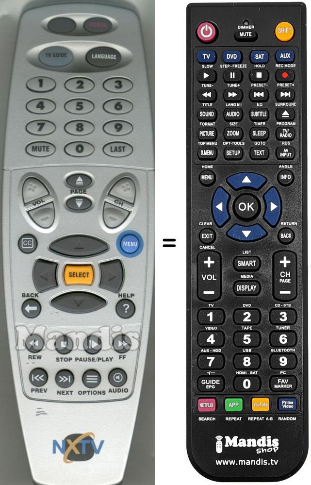 Comando à distância que substitui o original UE-RC-0100 em todas as suas funções.