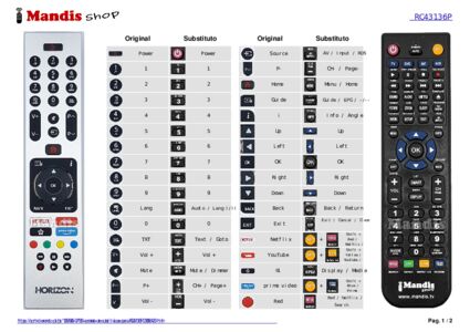 Um documento está incluso para ajudá-lo a usar o novo controle remoto facilmente, mostrando a correspondência dos botões.