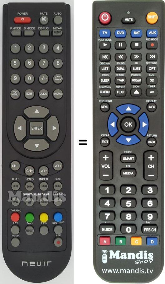 Comando à distância que substitui o original NVR-7504-22HD-N em todas as suas funções.