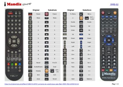 Abaixo, mostraremos a correspondência entre cada botão no controle remoto original e o botão que executa a mesma função no controle remoto de substituição. Em alguns casos, pode ser necessário pressionar a tecla SHIFT antes de pressionar outro botão para realizar determinadas ações. Essas funções adicionais geralmente não são amplamente utilizadas e são incluídas para facilitar o entendimento do controle remoto de substituição, ou porque o controle remoto original tem mais botões do que seu equivalente.