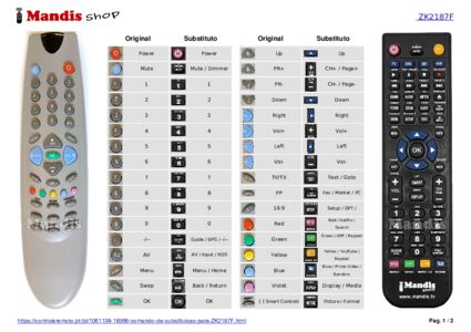 Um documento está incluso para ajudá-lo a usar o novo controle remoto facilmente, mostrando a correspondência dos botões.