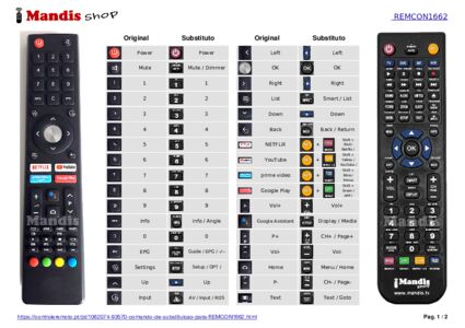 Um documento está incluso para ajudá-lo a usar o novo controle remoto facilmente, mostrando a correspondência dos botões.
