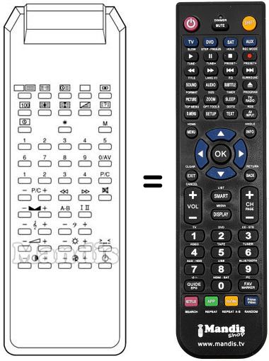 Comando à distância que substitui o original TVC 99CH 50PR em todas as suas funções.