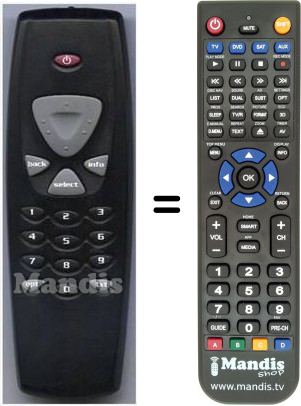Comando à distância que substitui o original 262586462 em todas as suas funções.
