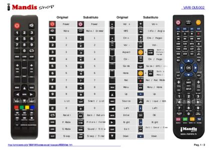 Abaixo, mostraremos a correspondência entre cada botão no controle remoto original e o botão que executa a mesma função no controle remoto de substituição. Em alguns casos, pode ser necessário pressionar a tecla SHIFT antes de pressionar outro botão para realizar determinadas ações. Essas funções adicionais geralmente não são amplamente utilizadas e são incluídas para facilitar o entendimento do controle remoto de substituição, ou porque o controle remoto original tem mais botões do que seu equivalente.