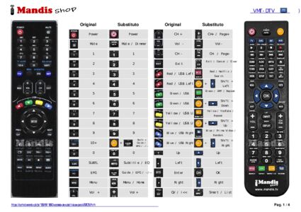 Um documento está incluso para ajudá-lo a usar o novo controle remoto facilmente, mostrando a correspondência dos botões.