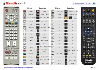 Um documento está incluso para ajudá-lo a usar o novo controle remoto facilmente, mostrando a correspondência dos botões.